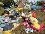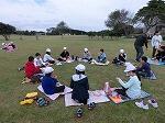 とてもよいお天気の中で、調理員さん手作りの楽しくおいしいお弁当を食べました。