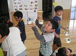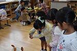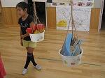 子どもたちは、身近にある物の重さを真剣にてんびんを使って調べていました。