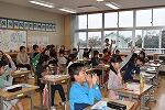 ↑安全教室 真剣な表情でお話を聞く子どもたち