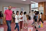 ↑ 3年生 外国語活動 「いろいろな形をかこう」ALT2名に保護者も一緒になって、コミュニケーションUP!