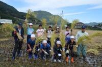 専用の鎌を使い、手で稲を刈り、コンバインに入れる作業をさせていただきました。収穫したお米をみんなで食べるのが楽しみです。