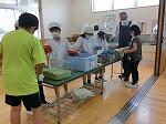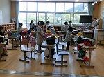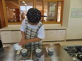給食の配膳の様子を見に行くと、1年生は既に給食を食べていました。