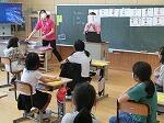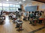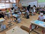 1~3年生は体育館で、4~6年生は教室で映像を見ながら実施しました。短い時間でしたが、「腕をピンと伸ばす」「指先を見る」などを意識し、とても上手になりました。運動会が楽しみです。