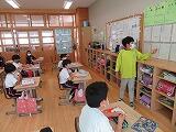子どもたちは、養護教諭の話をよく聞きながら歯を丁寧に磨くことができました
