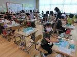 カッターナイフを使った2年生は、最初は恐る恐る紙を切っていましたが