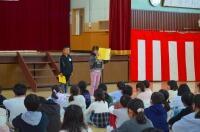 新任式では、新しく赴任した4名の職員がそれぞれあいさつした後、代表児童の6年生からお迎えの言葉を伝えられました。