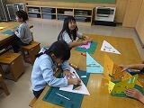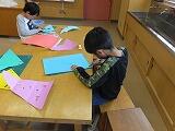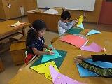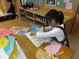 色紙をランダムに切り、その形から様々なものを想像していきます。