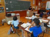 3年生は国語です。夏休みの思い出や出来事を、単語で書き出していました。それを基にして、文章で書いていく学習です。一人一人いろいろな思い出や出来事があり見ていて、楽しいです。