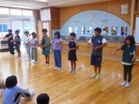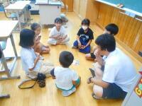気温が高いのと、雨が降ったり止んだりしていたので、班ごとに室内で活動しました。6年生を中心に遊ぶ内容を考えて、どの班も楽しく活動していました。上級生の下級生への優しいまなざしが素敵でした。
