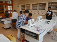 5年生は、家庭科です。地域ボランティアの皆様にお手伝いいただいてミシンを使った学習に取り組んでいました。