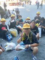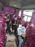 フジテレビの班別行動を終えて、バスに乗りました。帰ります。みんな元気です。