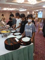 おはようございます。ホテルで朝食です。みんな元気です。バイキングでした。