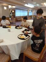 広いところでいつもと違った感じで、給食が一層おいしく食べられますね。