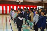 6年生が5年生に太鼓のバチを託します。そして、5、4、3年生で寺尾小の「絆」を演奏します。