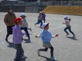 ベースボール型ゲームをを取り入れた運動です。ボールを打つのは難しそうでしたが段々と上手くなっています。