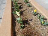 チューリップの球根から芽が土の上に出てきました。少しずつ春を感じますね。