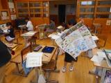 5時間目、2年生が卒業式に向けての飾り付けの作成をみんなで協力して行っていました。