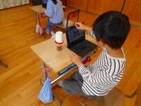 1年生は、生活科です。ドングリやマッボックリでつくったおもちゃを写真に撮り、その画像を使ってタブレット端末の中にある記録用紙にまとめていました。友達同士でお互いの写真を確認しながら楽しそうにまとめていました。