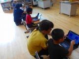 1年生がタブレットの使い方を確認して、国語の復習をしていました。