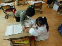 3年生の国語での場面。とてもよい写真だったのですが、あまりにもしっかり顔が写っていたので、