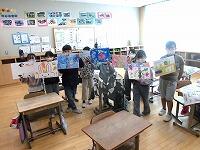 2年生の教室を訪れると、「見て、見て」と次々に割りばしを差し出されました。