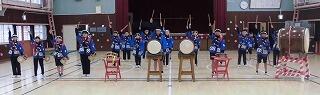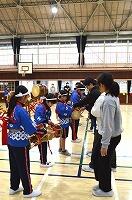 そして、5年生に小太鼓やバチを手渡しました。