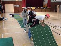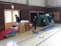 3・4年生の体育の授業では、運動器具をたくさん並べていました。