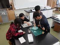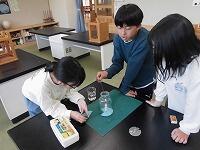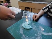 6年生が、線香とろうそくを使って、空気の動きを調べています。