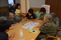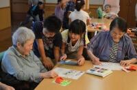 グループごとにふれあい活動の内容を工夫して、おり紙やすごろく、ぬりえなどでお年寄りの方と楽しく活動することができました。