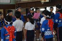 お囃子引継ぎ式では,卒業する6年生から3年生がはっぴを譲り受け,新メンバーで『寺尾小 絆』を披露しました。3~5年生の力強い演奏に寺尾の心と技がしっかりと引き継がれました。