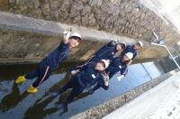 卒業式の会場となる体育館の窓清掃、学校の脇を流れる側溝の清掃、校庭の石拾いと3班に別れ、