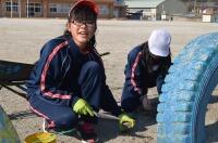 運動会の退場門とお囃子の小太鼓の台をペンキ塗りしました。小太鼓の台は、地域の方に制作していただきました。