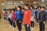 始業式の様子です。進級の喜びを友達と分かち合い、生き生きとした表情で式に臨みました。