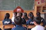 校長先生のお話を聞き、校長先生からも寺尾カルタをプレゼントしていただきました。