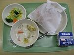 今日の給食のシチューには、学校農園で収穫したサツマイモが入っていました。