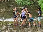 ↑水遊びも思いっきりする元気な子どもたち。