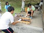 ↑みんなで協力して木を切りました。