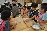 地域の島田幸一郎先生を講師に、寺尾地区のボランティアさんにお手伝いいただきそば打ちに挑戦です。