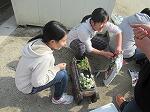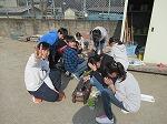 自分たちで作成した木製のプランターに花を植えました!