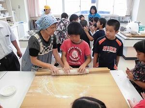今日は、学校にたくさんの「そば打ち名人」が来てくださいました。