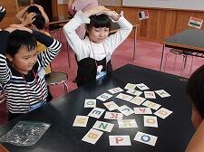 発音の練習やアルファベットカードでの”カルタ取り”を通して、A・B・C・・・の学習をしました。