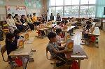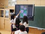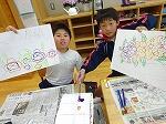 テレビに映っているのは、自分たちが1年生の時に描いた学校行事の絵で、今の1年教室に掲示してあります。