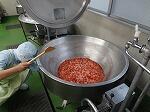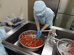 調理員さんが10キロ以上のいちごのへたを取り、丁寧に洗い、