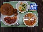 黒パン 手作りイチゴジャム 牛乳 ミートボール