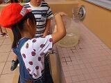今日は、算数の「水のりょう」の学習で、1リットルますを使って、さまざまなもののかさを測りました。