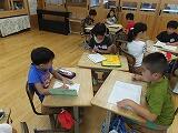 国語では、小さな「カンジ―はかせ」たちが漢字の組み合わせクイズをつくり、グループで問題を出し合いました。