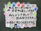 「元気よく登校し、みんなで助け合い、みんなでささえ、進んでちょうせんするクラス」