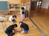 算数「体積」の学習では、力を合わせて1立法メートルを組み立てる姿が見られました。