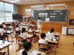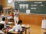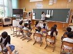 子どもたちは、養護教諭から、1本1本の歯にはそれぞれいろいろな役割があることを学びました。