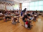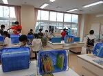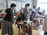 家庭科室は、いっぱいに並べられた本でまるで図書館に。また、家庭科室の横には移動図書館あじさい号も待機しています。多くの児童がお目当ての本を借りていました。今日は移動図書館2回目ですが、前回借りた本の返却を忘れた児童は一人もいませんでした。さすが寺尾小の子どもたち。
